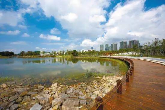 地形富于變化,有開闊的人工園林,還有山塘湖泊點(diǎn)綴其中,福田河也從中蜿蜒而過,景致獨(dú)特,吸引了很多登山愛好者。